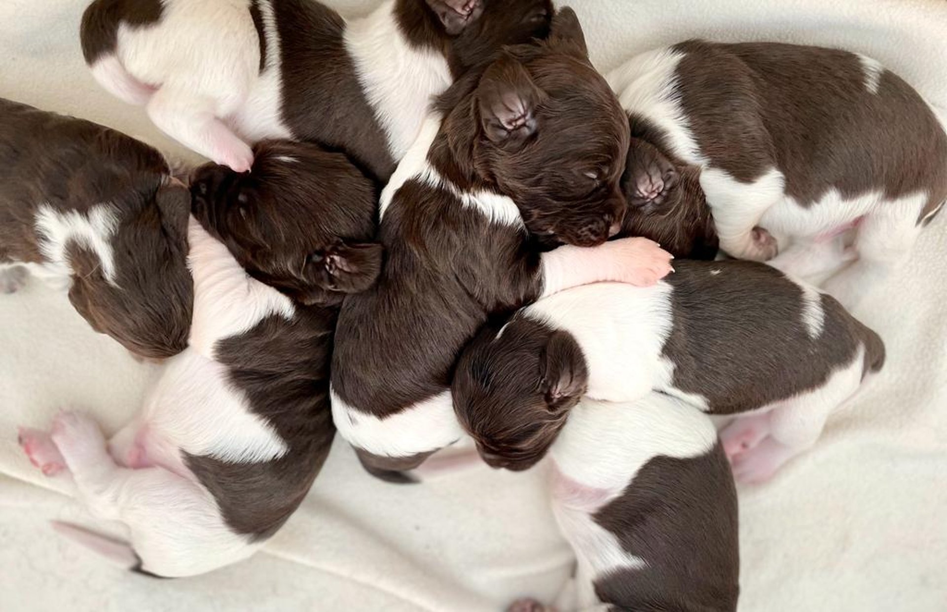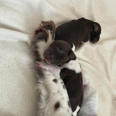 Gute Neuigkeiten, nach 10 Tagen haben alle Welpen ihr Gewicht verdoppelt. Sie werden immer aktiver, wagen sich schon an ihre erste Schritte und der ein oder andere öffnet schon leicht die Augen.
