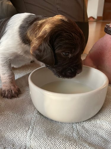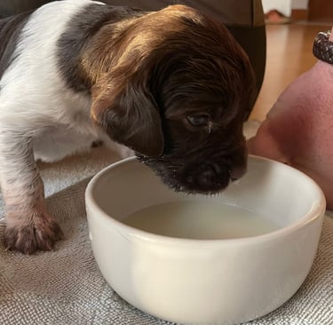 Ab heute bekommen die Welpen Welpenmilch zugefüttert