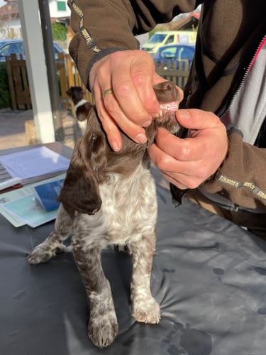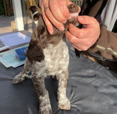 Heute waren wir beim Tierarzt, sie wurden untersucht, gechippt und geimpft. Volles Programm, denn danach kam Zuchtwart Hartwig Frank für die Zuchtabnahme.