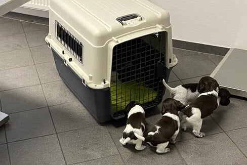 Heute konnten die Welpen ihren ersten Ausflug ins Freie genießen.
